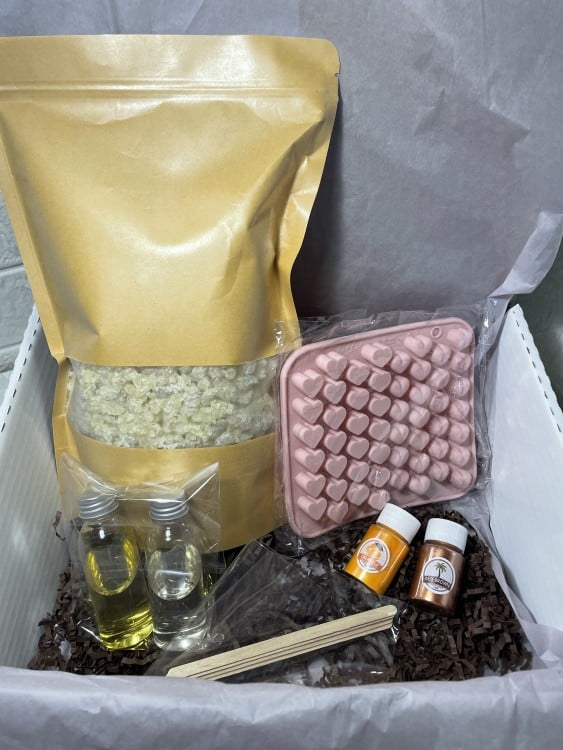 بوكس صناعة المستكه المعطره يحتوي على كيلو من المستكة الفاخرة وزيوت عطرية مميزة وألوان مايكا جميلة مع قالب سيلكون وأعواد تحريك وستتمكن من صنع مستكة مخصصة تعكس ذوقك بالإضافة إلى ذلك يأتي مع دليل خطوة بخطوة لصنعها بسهولة واجعل كل لحظة مميزة أو أهدِه لأحبائك